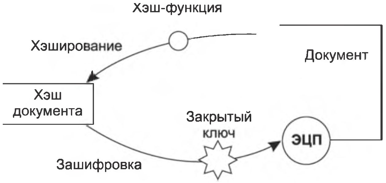 Рис. 80. Схема выработки ЭЦП при асимметричном шифровании