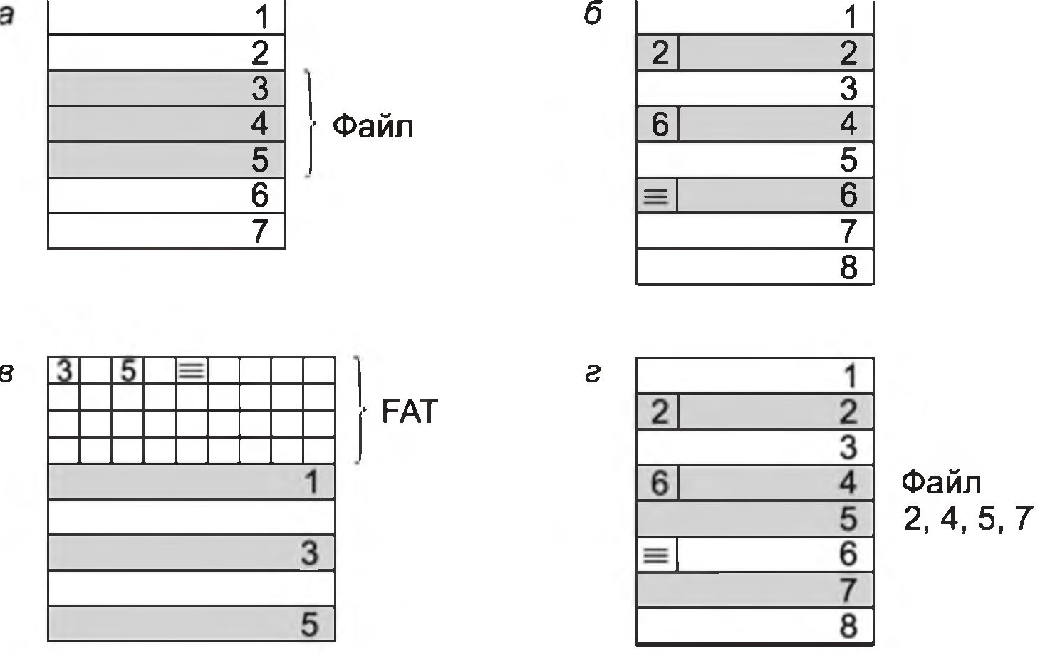 Рис. 13. Способы физического размещения файлов на диске