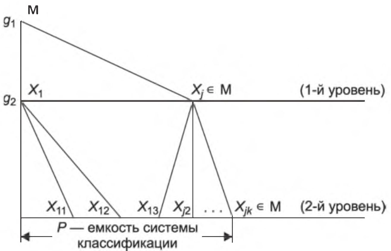 М0 = {х1, х2, ..., хj, ..., x} — мощность классифицируемого множества, где g, gj, ... — признаки классификации и g1×G, g2×G.