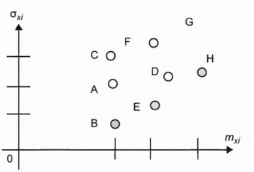 Процесс выбора доминирующих решений из множества допустимых называется выбором решений по Парето. Полученное подмножество доминирующих решений называется «паретовскими» решениями. Для нашего примера это решения В, Е и Н.