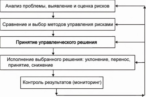 Процесс принятия управленческого решения в условиях риска иллюстрируется блок-схемой, приведенной на рис. 16.6. Как видно из схемы, процесс управления объектом через риски состоит из пяти основных этапов.