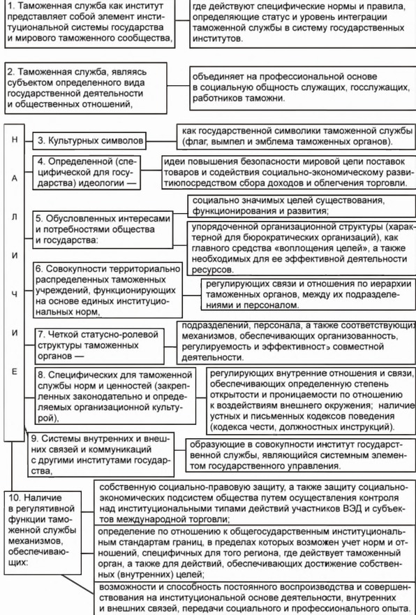 Таможенная служба как институт обладает следующими базовыми признаками: