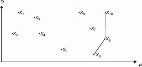 Для каждого из решений известны значения показателей P и Q, то есть x1(P1,Q1). В графическом виде результаты всех решений изображены на рис. 8.1.