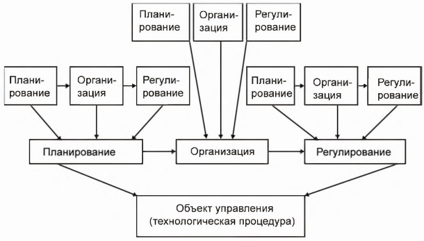 Каждая ячейка «пространственной пирамиды управления» предполагает определенный состав процедур по реализации конкретной части функции управления с учетом обеспечения качества результатов деятельности.