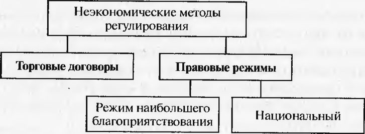 В числе нетарифных средств регулирования ВЭД находятся правовые инструменты, которые в подробностях изучаются международным правом, но тесно связаны с международной экономикой. Это торговые договоры и режимы (рис. 9.6).