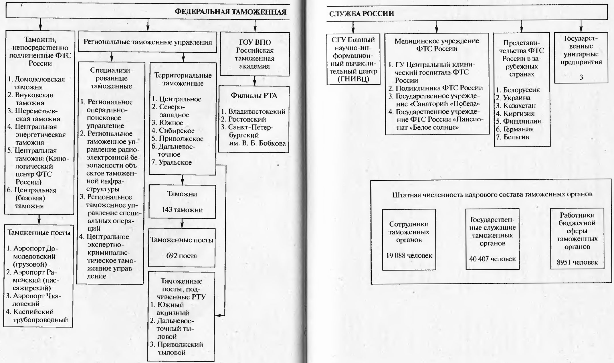 Структура таможенных органов РФ и организаций ФТС России приведена на рис. 1.3 и 1.4. Центральным органом, осуществляющим